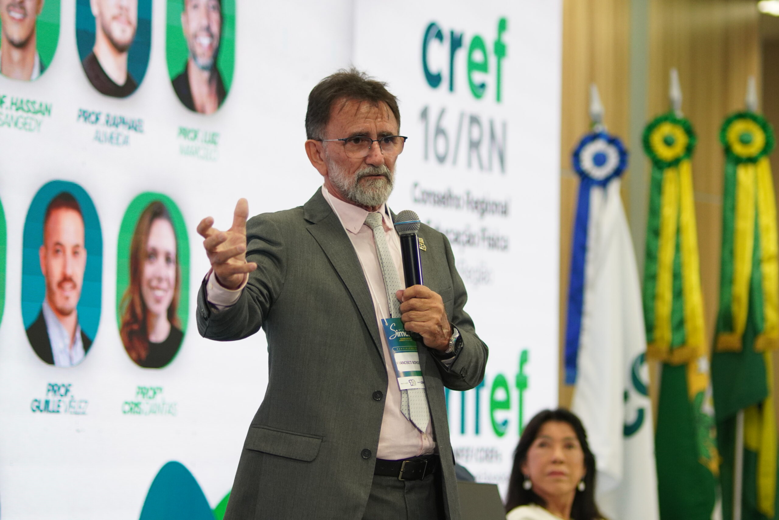 O evento também contou com a presença do presidente do Conselho Federal de Educação Física (CONFEF), Cláudio Augusto Boschi, que destacou a importância de iniciativas como o SIMCREF para o fortalecimento científico e profissional da categoria em todo o país. “Sempre ficou muito claro que nós trabalhamos em prol da sociedade. Parabenizo o presidente Francisco Borges de Araújo pela realização do evento, na qualidade e na vontade de realização da ação em prol do profissionais de Educação Física e da sociedade potiguar”.